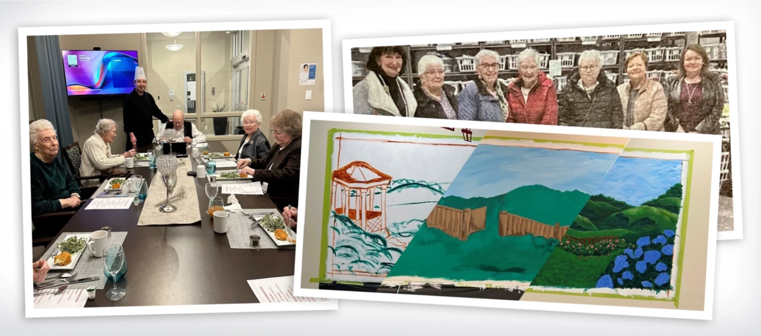 Food has a special way of bringing people together, and at The Hamlets at Vernon, residents experience an elevated dining experience through the Gourmet Dinner Club. Led by Mathieu Auger, Support Services Manager and Red Seal Chef, this exclusive monthly event invites eight randomly selected residents from the Assisted Living and Independent Living floors to enjoy a special fine-dining meal.